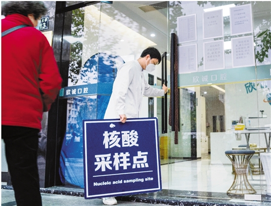 12月9日,杭州建国北路一家口腔诊所收起核酸采样点的服务牌,停止了采样服务。
