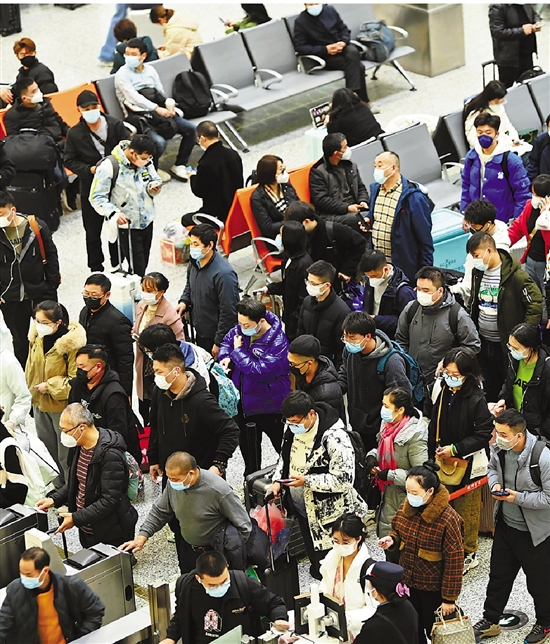 12月9日,杭州东站,客流量明显增加,全体旅客戴好口罩,检票上车。