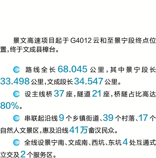 景文高速项目起于G4012云和至景宁段终点位置,终于文成县樟台。
