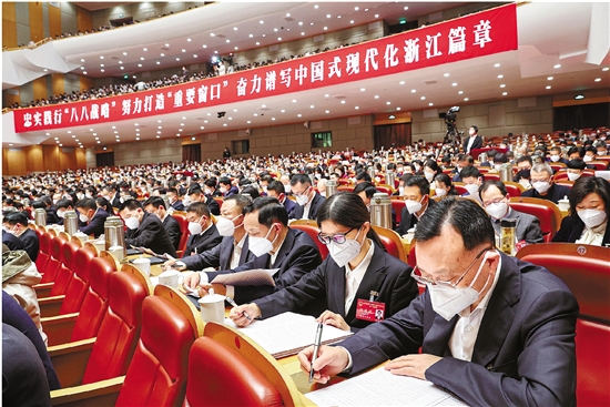 1月12日上午,省十四届人大一次会议在杭州隆重开幕。这是省人大代表们认真听取政府工作报告。 本报记者 梁臻 李震宇 摄