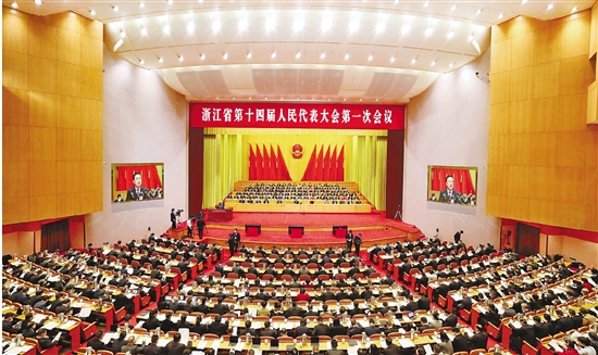 1月12日上午9时,省十四届人大一次会议在杭州隆重开幕。 本报记者 魏志阳 俞碧寅 摄