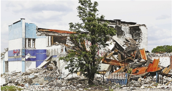 在卢甘斯克波帕斯纳亚拍摄的被损坏的建筑。(资料照片) 新华社发