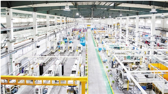 天成航空产业园上架新产线,使用机械臂代替人工,实现生产线上下料自动化。