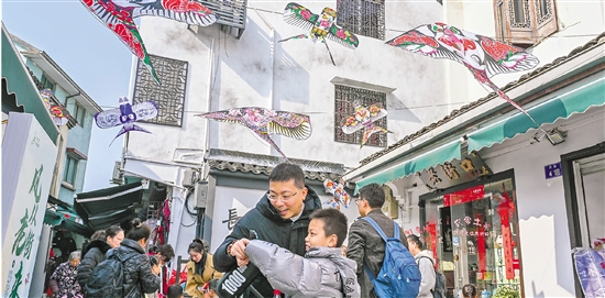3月4日,杭州入春,一场创意“风”潮文化活动在杭州市滨江区长河老街启动。风筝展、民间技艺表演、汉服巡游、非遗集市等让人们感受传统与潮流的碰撞,也带旺了老街的人气。 本报记者 董旭明 摄
