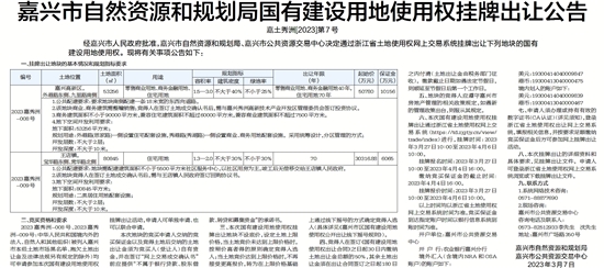 嘉兴市自然资源和规划局国有建设用地使用权挂牌出让公告