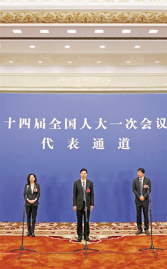 3月7日,第十四届全国人民代表大会第一次会议举行第二场“代表通道”采访活动。 新华社记者 王毓国 摄