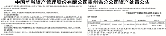中国华融资产管理股份有限公司贵州省分公司资产处置公告