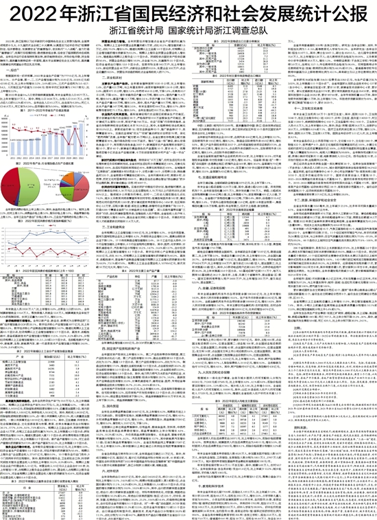 [1]本公报所列各项数据均为年度初步统计数据,最终核实数以中国统计出版社出版的《浙江统计年鉴—2023》公布的数据为准。部分数据因四舍五入原因,存在与分项合计不等的情况。
