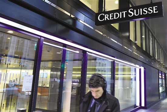 在瑞士日内瓦,一名男子走过瑞士第二大银行瑞士信贷银行。 新华社发