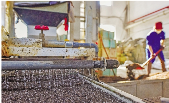 自动化流水线给秧盘洒水。 共享联盟·海曙 蔡迪 摄