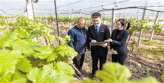 禾城农商银行客户经理走访农户,了解春耕备耕情况。 赵丹 摄