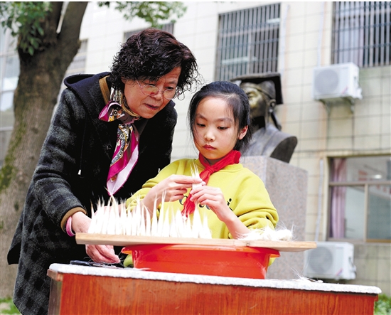 近日,南浔区善琏镇老年学校学员走进善琏学校,担任起湖笔制作技艺传承体验活动的导师,这也是善琏学校的特色课程之一,让学生通过动手体验传承非遗,感受湖笔文化独特的魅力。 谢新红 摄