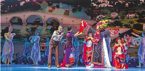3月23日晚,舞蹈剧场《遇见大运河》在杭州剧院与观众再见面。作为中国首部文化遗产传播剧,它向世界展现中国大运河之美以及中国为大运河的保护和发展所作出的不懈努力。 本报记者 董旭明 摄