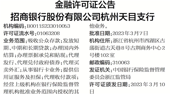 发证机关:中国银行保险监督管理委员会浙江监管局