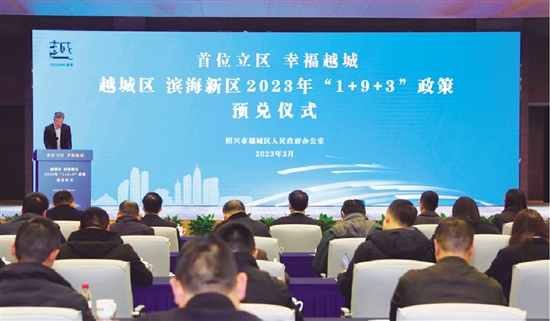 越城区、滨海新区2023年“1+9+3”政策预兑仪式现场