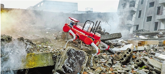 2022年,杭州云深处科技智能机器狗“绝影”参与抗震救灾实战化演习。图为正在进行灾后废墟侦察测试。 云深处科技供图