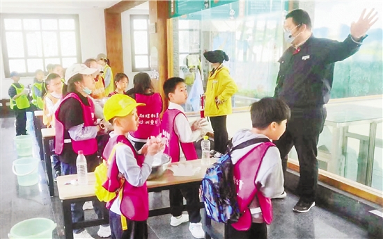 李子潇在熊猫室内活动场前给前来参观的小朋友们讲解。