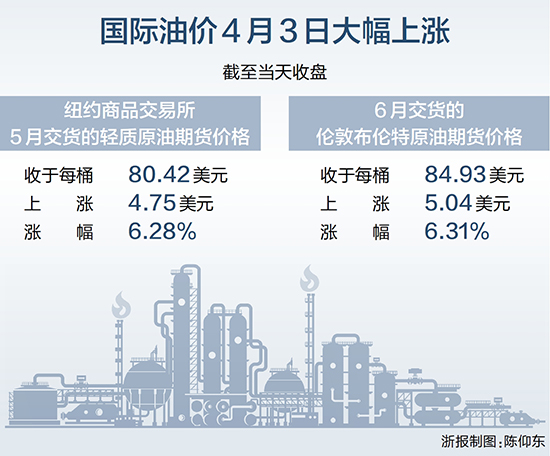 国际油价4月3日大幅上涨