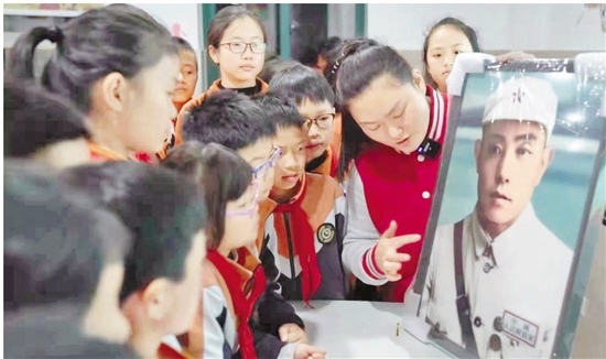 孙嘉怿带着烈士画像进校园,为学生们讲述红色故事。 受访者供图