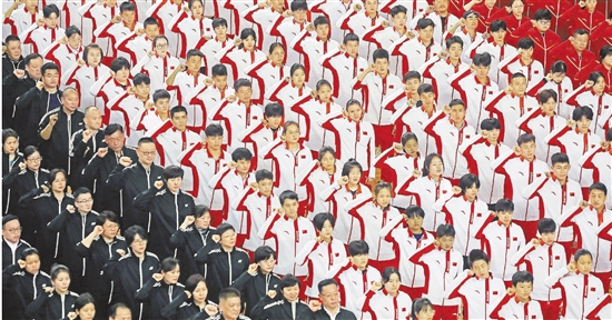 4月4日,全省体育战线亚运攻坚誓师动员大会在浙江体育职业技术学院举行。 本报记者 林云龙 摄