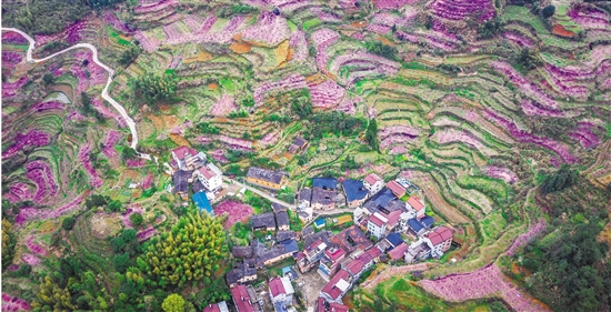 丽水莲都区仙渡乡的6800亩桃花竞相绽放。