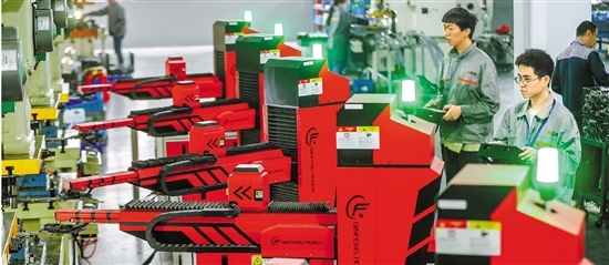 4月11日,位于德清经济开发区的浙江金士顿汽车科技有限公司生产车间内,工人正在加紧赶制一批出口美国的汽车减振器订单。近年来,企业不断加大研发投入,进行自动化、智能化改造,产能得到大幅提升。 拍友 王树成 摄