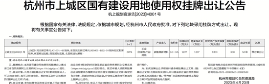 杭州市上城区国有建设用地使用权挂牌出让公告