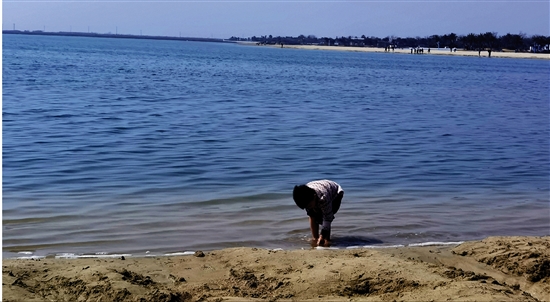 孩童在沙滩戏水