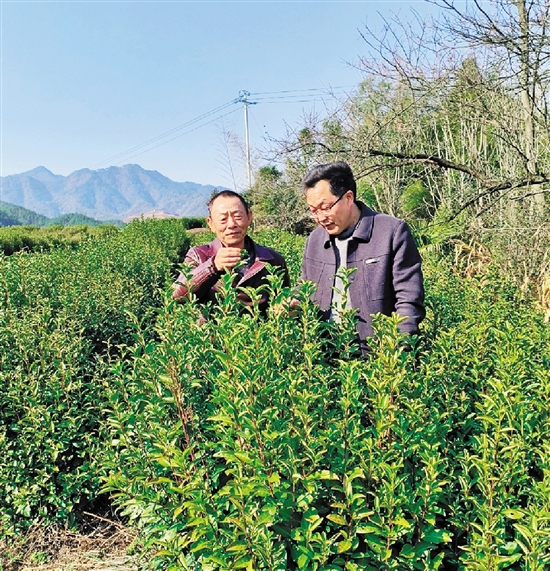 为提高采摘茶叶的效率,降低茶叶采摘成本,近日,开化县开展“茶产业提升”专家服务行动,组织茶叶专家对茶农进行规范指导。图为开化县第三届拔尖人才、县茶产业发展中心正高级农艺师余书平指导茶农科学采茶。 胡萍 毛宇轩 摄