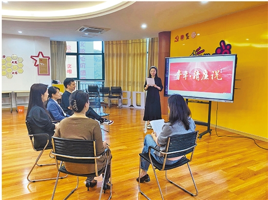 为强化对年轻干部教育管理监督,常山县纪委驻组织部纪检监察组组织团员青年干部开展“青年·清廉说”活动,畅谈廉洁从政感悟,引导年轻干部坚定理想信念,扣好廉洁从政的“第一粒扣子”。 王瑶 摄