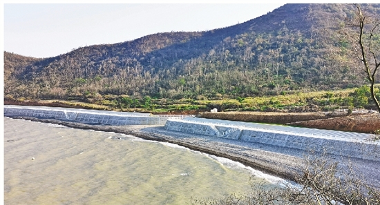 日岙村卵石滩的新建堤坝将减少水土流失,促进海岸线的生态可持续性。