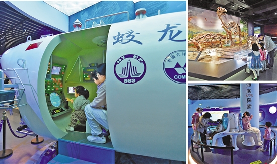 浙江省地质博物馆日前开馆以来,每天有不少家长和孩子来参观。它是我省最大、最新的地学类博物馆,展示、讲述浙江从元古宙到新生代这20亿年来的地质演化历史、矿产资源分布、地质遗迹等。图为家长和孩子们在参观浙江省地质博物馆,乐在其中。 本报记者 彭鹏 拍友 范方斌 任汉情 摄 |