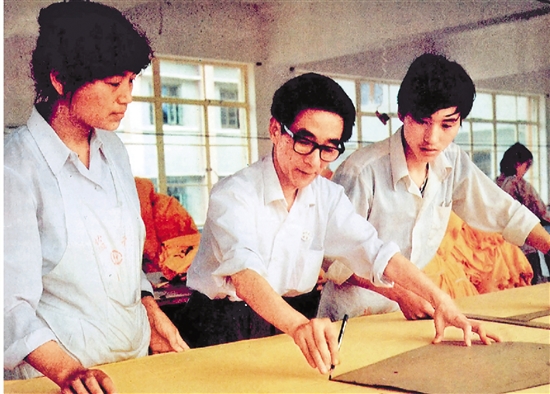 步鑫生厂长在裁剪车间排料(资料照片)。
