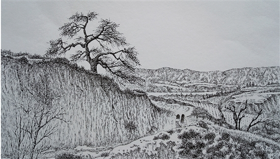 钢笔画 《村口》(局部) 魏维伟(广东连州) 作