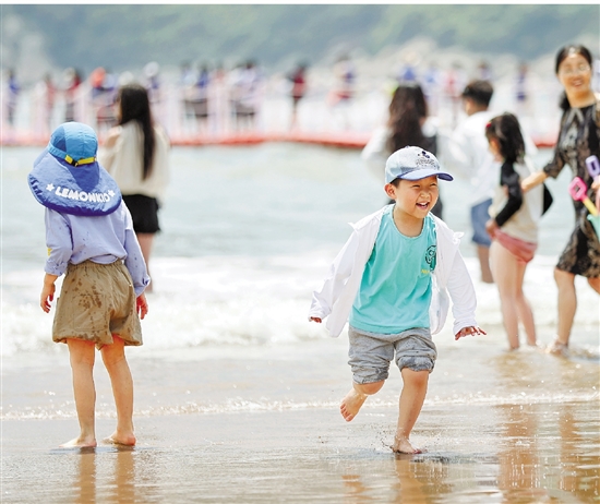 5月2日,舟山市朱家尖大青山里沙景区游人如织,游客在景区里体验海上游玩项目,感受滨海乐趣。 拍友 邹训永 摄