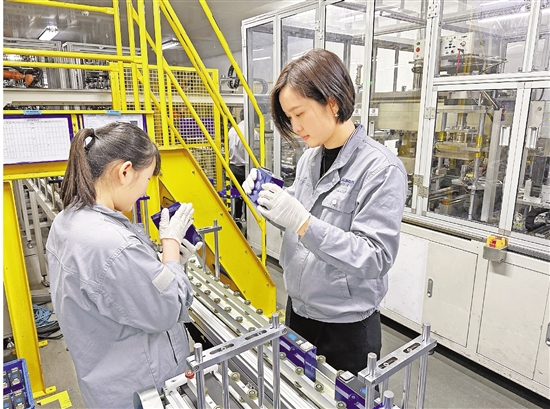史洋带着记者(右)检测电池。 拍友 徐颖 共享联盟·龙湾 郑懿 摄