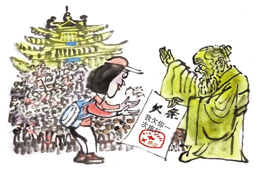 “五一”节当天,河南洛阳栾川老君山景区因达到限流标准停止售票,让不少前来游玩的游客吃了“闭门羹”。为此,景区给近千名游客开具了“我欠你一次旅行”的“欠条”,称十年内游客可凭“欠条”免费入园一次。“欠条”固然展现了景区的友善姿态,不过也提醒热门景区应进一步优化节假日预警限流机制,善用网络预约和大数据等,把工作做在前。 王成喜 作