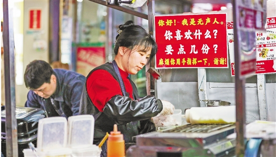 无声小摊很安静,但人气很旺。 本报记者 叶剑锋 摄
