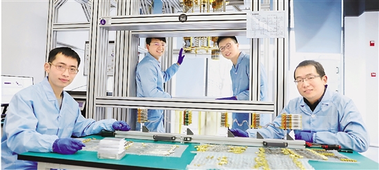 图为浙大超导量子计算团队中的青年科学家,从左到右是宋超、王震、郭秋江、李贺康。 受访者供图