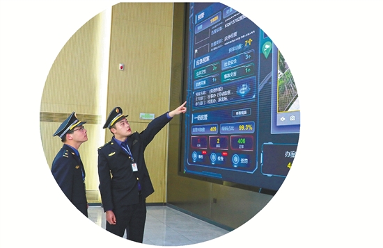 柯桥区行政执法指挥中心工作人员对执法信息开展分析研判