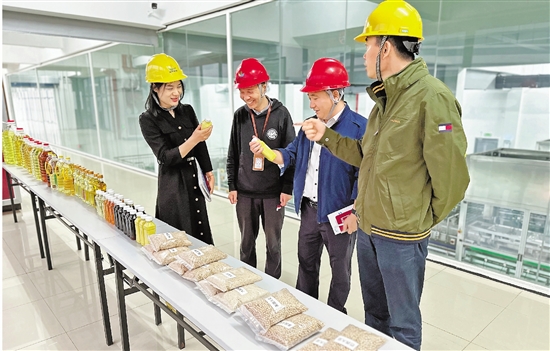 本报记者在舟山良海粮油有限公司采访。 本报记者 王凯艺 摄