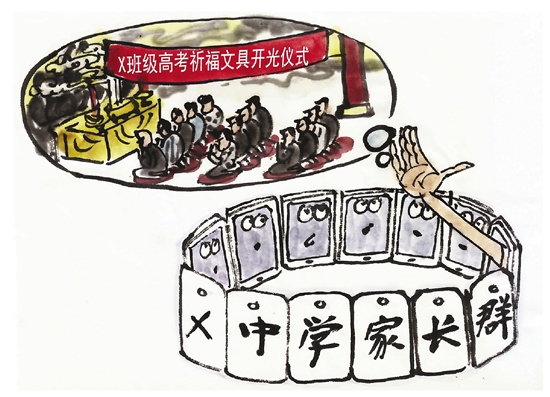 多家媒体报道,日前一张微信聊天记录截图显示,长沙一中学某班级老师和家委会代表计划去南岳为孩子们上香祈福,再请“大师”给孩子们的考试文具“开光”。该校相关负责人回应称,此事是少数家长自己的想法,老师并不知情,校方已叫停这种迷信行为。辖区教育局表示,此事正在调查。 王成喜 作 |
