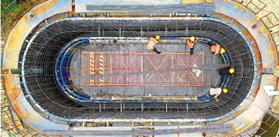 5月30日,浙江省杭绍台高铁线温岭至玉环铁路田岙大桥工程工地上,中铁十四局工人正在全力有序地推进最后4个桥墩的建设,力争在7月下旬26个桥墩全部建成。高铁线建成后,玉环至杭州仅需1个多小时。 拍友 吴达夫 摄
