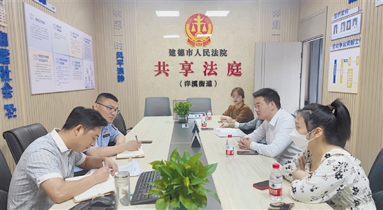 洋溪街道社会治理中心共享法庭内正在调解一起矛盾纠纷