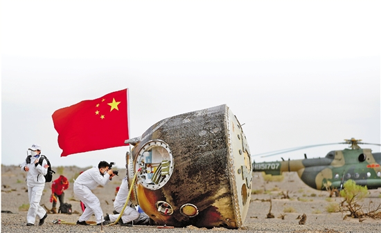 6月4日,神舟十五号载人飞船返回舱在东风着陆场成功着陆。