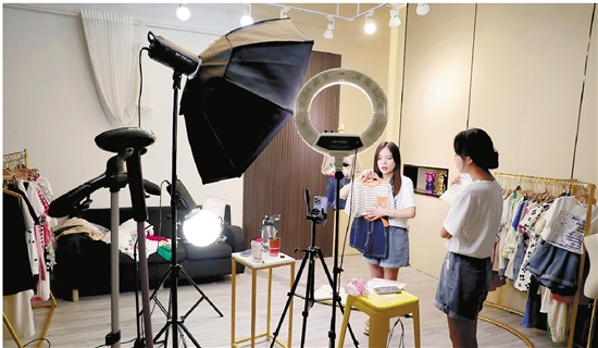 织里镇各童装电商企业卖力直播 王洁涵 摄