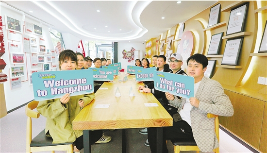 图为青年突击队成员在“武林大妈亚运志愿V站”合影。 受访人供图
