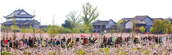 凤桥镇桃花盛开,游人如织。
