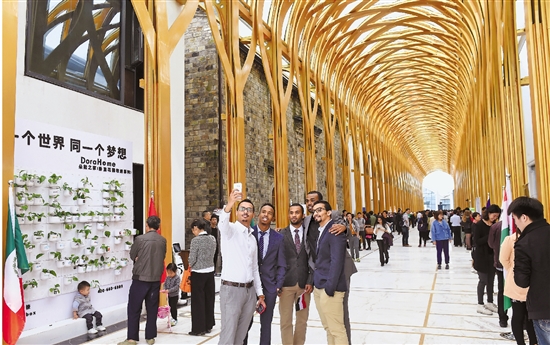 余杭梦想小镇创业大街金色长廊,周围集聚着来自各地的创业者。 本报资料照片