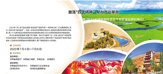 2023年1月,浙江提出实施“地瓜经济”提能升级“一号开放工程”,打造更具韧性、活力、竞争力的“地瓜经济”。为进一步深化甘浙两省交流合作,鼓励吸引更多浙商来甘肃投资,第二十九届中国兰州投资贸易洽谈会期间拟举办2023全球浙商投资合作发展峰会。